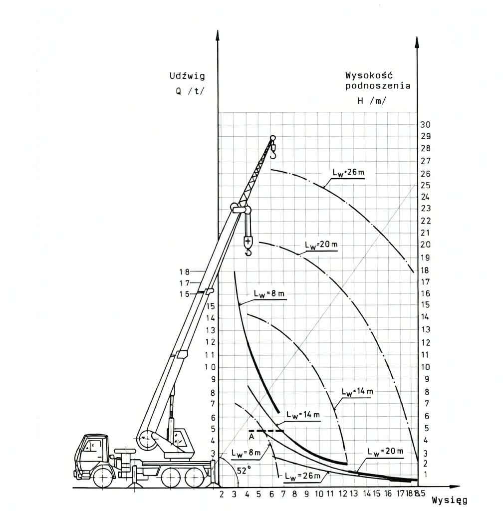 Wykres pracy żurawia Jelcz 6×6 18 TON DST – 0184